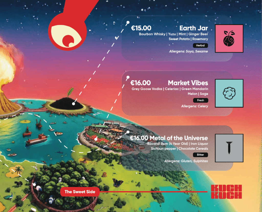 Selecting the perfect cocktails in Malta is not just about what looks good on a menu; it’s about finding the drink that matches your taste, mood, and vibe for the night. At Kuch Kuch, we’ve designed the menu to help you do exactly that: our signature cocktails are categorised into Sweet and Sour, and each drink comes with clear tasting notes so you can choose with confidence.